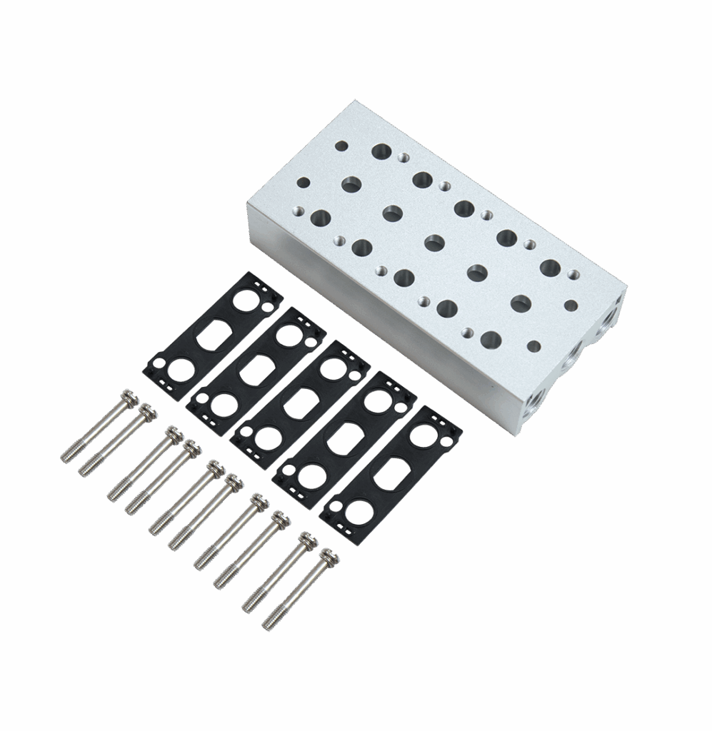 Desenvolvido para facilitar a instalação e a organização de válvulas solenoides modulares, o bloco manifold para válvulas tipo SY é uma solução prática e eficiente para aplicações pneumáticas industriais. Projetado com precisão para garantir total compatibilidade com válvulas da linha SY já existentes no mercado, esse Manifold permite montagem centralizada e segura, otimizando espaço e simplificando o cabeamento e o encanamento pneumático.